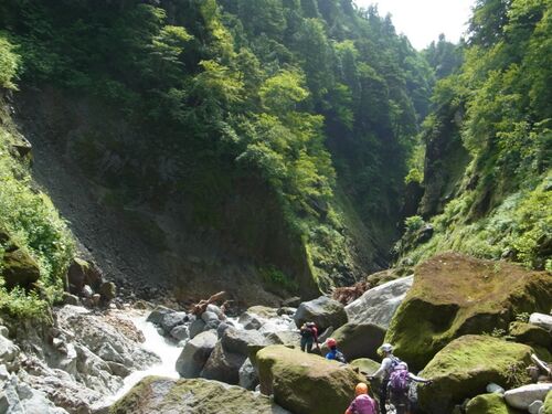 日:7月28日 メンバ:会員11名(うち1班4名は途中敗退) 1班、Y田、K光、N原、K田 2班、Y沢、K河、T田、M上 3班、T中、U海、O谷、 内容: 第1部:遡行訓練 実際の遡行を行った。大岩を登攀したり、徒渉したりした。また同じ沢を下降。 第2部:末端交換…